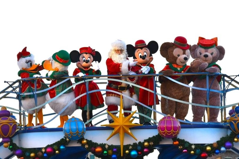 東京ディズニーシーのクリスマスでは、クリスマスの衣装に身を包んだミッキーマウスと仲間たちがサンタクロースと共にクリスマスのオーナメントで飾られた船に乗ってメディテレーニアンハーバーに登場します。