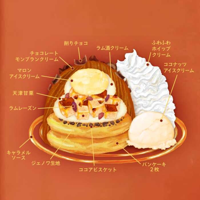 今年で5年目を迎える人気シリーズ「モンブランパンケーキ」が、チョコレートとマロンのダブルクリームとして進化。