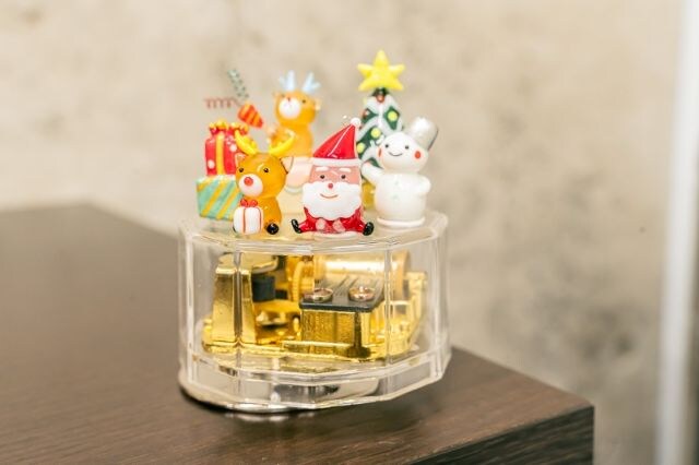 また、クリスマスプレゼントにぴったりなクリスマス楽曲の「神戸オルゴール」の販売も。レパートリーは、「恋人がサンタクロース」(作曲:松任谷由実)、「ハッピー・クリスマス(戦争は終った)」(作曲:ジョン・レノン&オノ・ヨーコ)、「ジングルベル・ロック」(作曲:ジョー・ビール、ジム・ブース 他)など。「神戸オルゴール」は、施設内で製作しているオリジナルブランド。オルゴールの規格に合わせて編曲し、音色を生み出す櫛の歯の調律やケースへの組み付けなど、専門性の高い技術をもった職人が手作業で行い、より高品質なものづくりを追求しています。