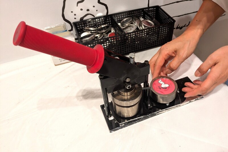 その場で、専用の機械でプレスして、缶バッジの完成です!