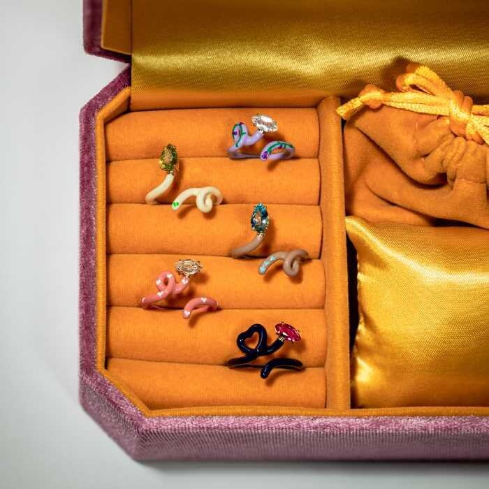 ジュエリー、バッグ、アパレルまで幅広いラインナップが揃い、Bea Bongiascaのハートモチーフリング(各106,700円)や、GEROCHRISTOのシルバーリング(各38,500円)、大関の文庫革×CORAL & TUSKの長財布(31,900円)など、アートとクラフトが融合したコレクションとなっています。