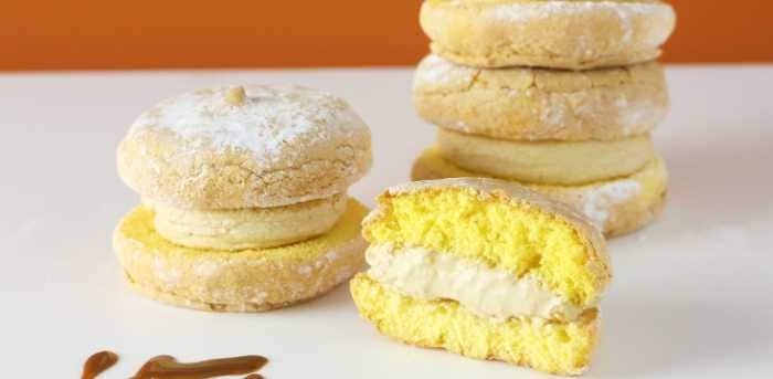 「生パンケーキサンド〈キャラメル〉」(420円・税込)は、ふんわりスフレ生地でまろやかなキャラメルクリームをサンドした贅沢スイーツ。