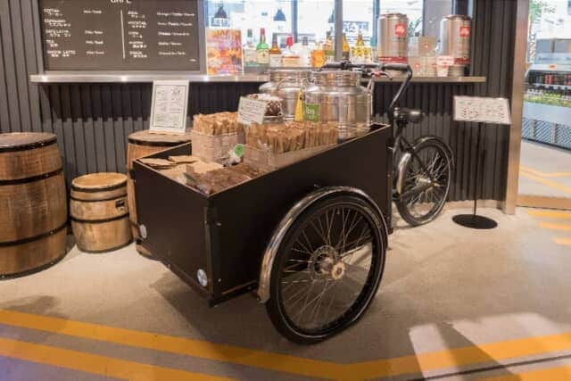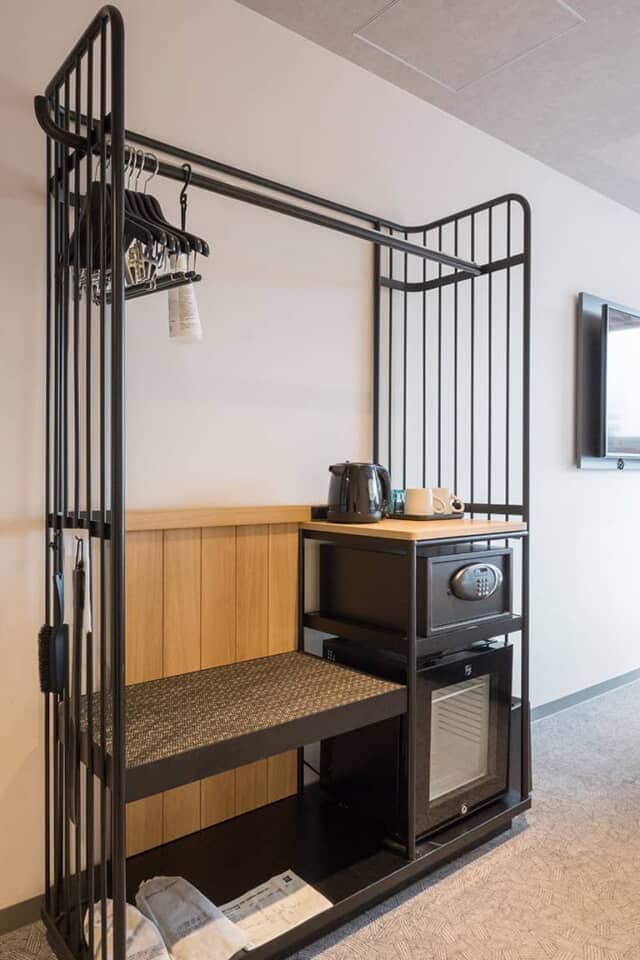 ホテルの近くにはレトロで雑多な雰囲気たっぷりの「柳橋中央市場」があることから、アメニティーバーはオシャレな3輪カーゴバイクの荷台。歯ブラシ(歯磨き粉とは別になってます)や、ヘアブラシ、コットン&綿棒などが並びます。基礎化粧品やカミソリが必要な場合はフロントでいただけます。