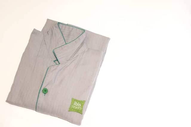 ▲ワンピースタイプのパジャマはホテルのロゴが刺繍されています