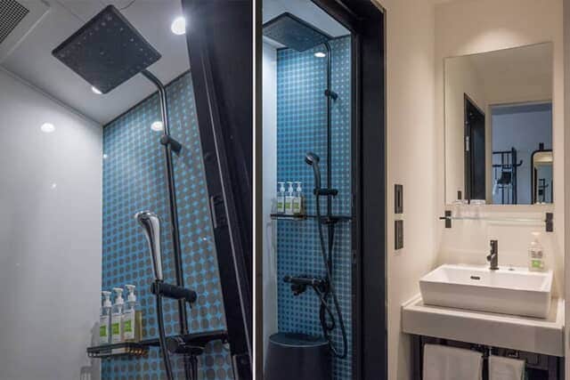 水回りは使い勝手のいいセパレートタイプ。すべての客室はバスタブのないシャワーブースで、全室にレインシャワーを備えます。