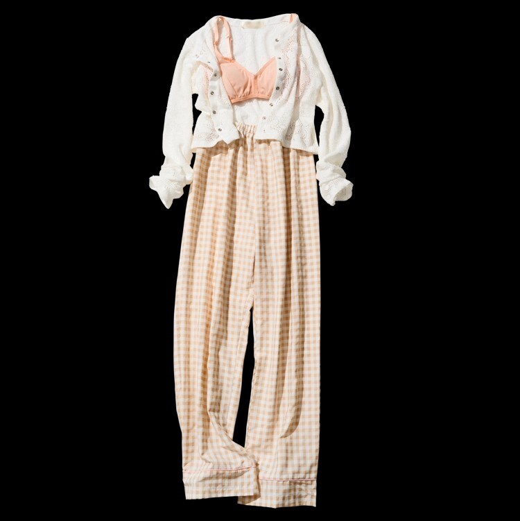 Item 【theVirgins】白カーディガン&ギンガムパンツ