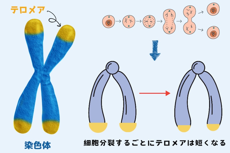 細胞分裂の度ごとに、テロメアの長さはちょっとずつ短くなっていくしかないのです。