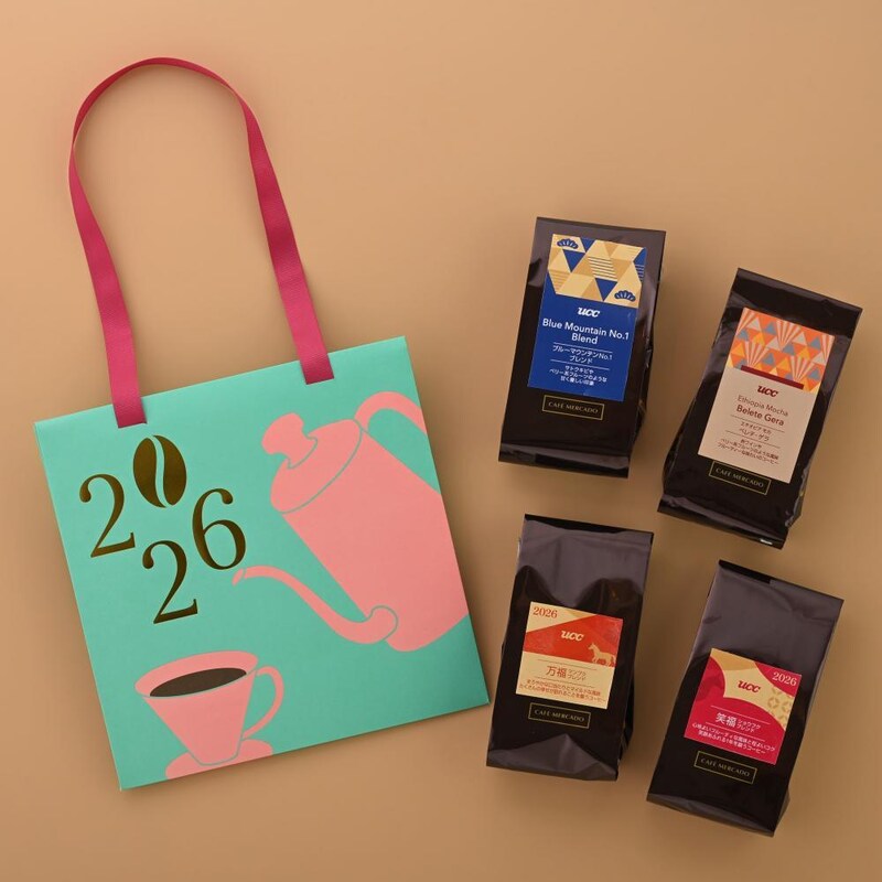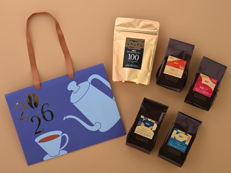 COFFEE STYLE UCCは、2025年11月14日から、全国のUCCグループ直営のコーヒー豆挽き売り業態「UCCカフェメルカード」「カフェノバール」18店舗で、5種類の「珈琲福袋2026」の店頭予約受付を開始しています。