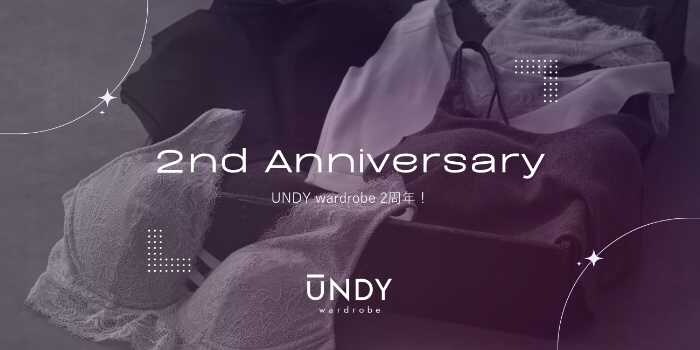 「UNDY wardrobe」では、誕生2周年を記念して期間限定のポイントバックキャンペーンを開催。公式オンラインストアで商品を購入すると、購入金額(税抜)の20%相当のポイントが後日付与されます。