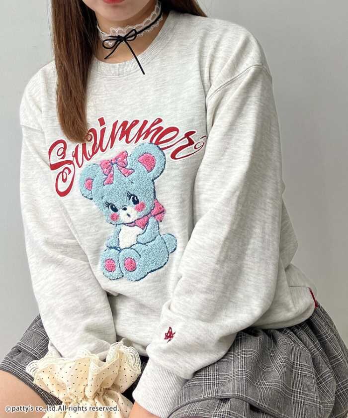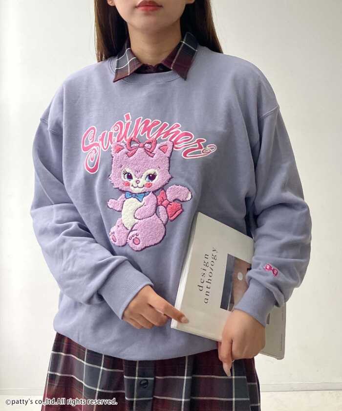 SWIMMER×AS KNOW AS plusのコラボスウェットは、ガーリーな可愛さと遊び心を詰め込んだ特別な1着。リボン刺繍やキーホルダーなど、細部までこだわりが感じられます。