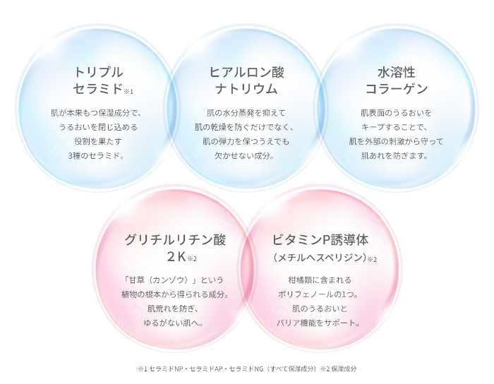 熱に不安定とされるレチノールを安定型*¹で配合し、うるおいをしっかりチャージ。さらに、5種の美容液成分がツヤと弾力を与えます。