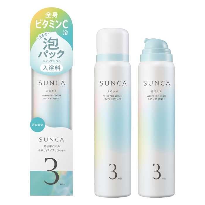 「SUNCA ホイップセラム入浴料 月のかさ」は、ビタミンC²を贅沢に配合した泡タイプ入浴料。軽やかな水色ムースが約3分⁴持続し、忙しい日でも手軽に“癒しの入浴美容”を楽しめます。