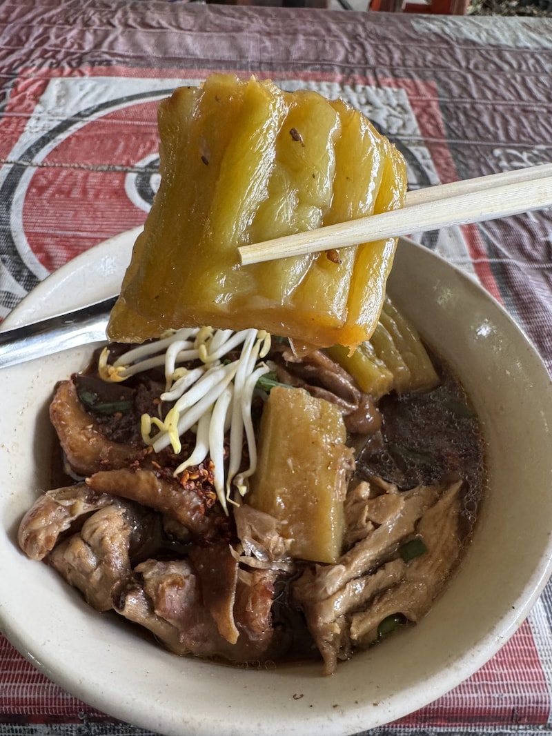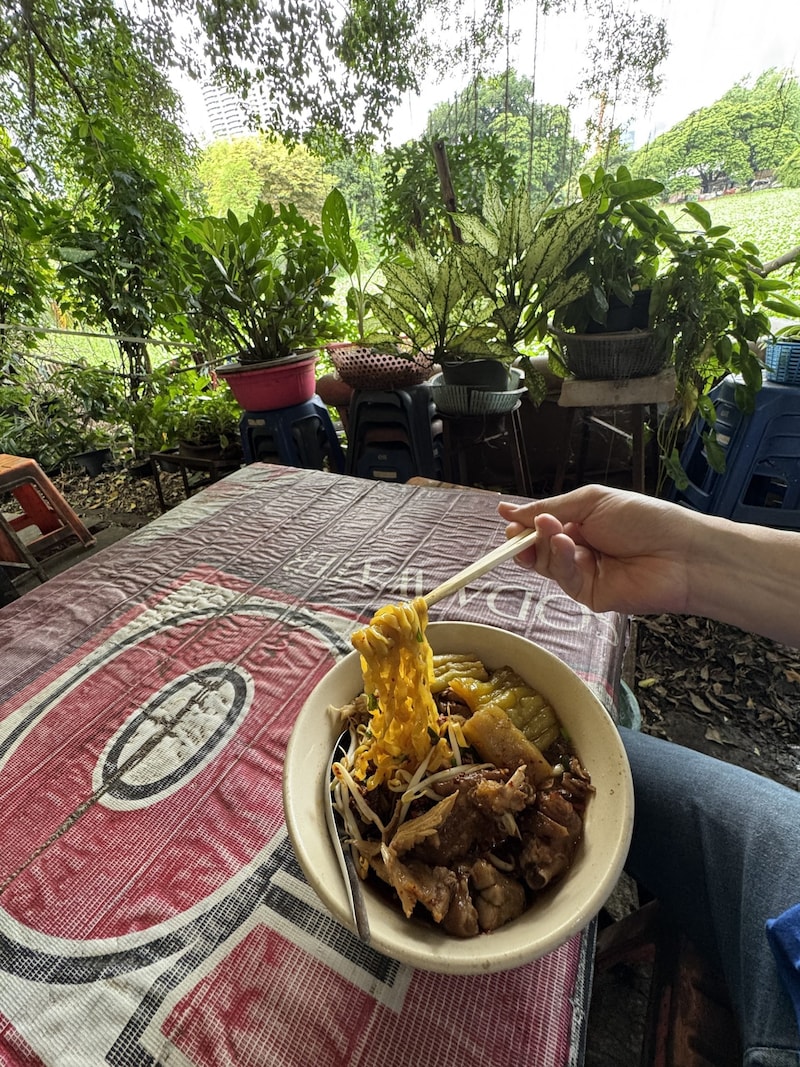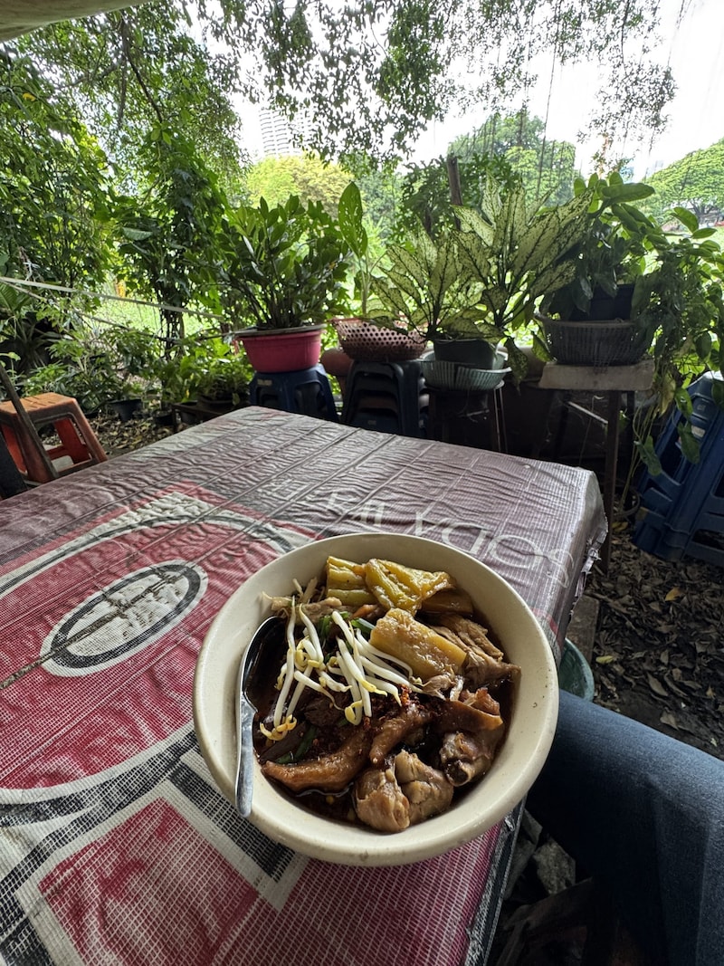 筆者はけっこう控えめな具量にしたのですが、それでも具だくさんなチキンヌードルになりました。なによりスープがうまい! やや甘めに仕上げられたスープが中華麺に最適。オカズからあふれ出た塩味も相まって、ちょうどいい感じなタイ式ラーメンに仕上がっています。