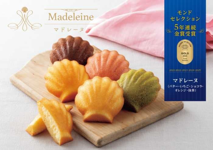 銀座コージーコーナーのマドレーヌは、モンドセレクションにおいて5年連続で金賞を受賞。