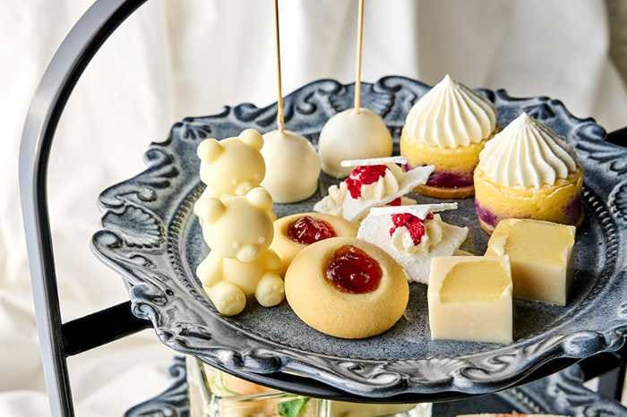 スタンド上段には、食べるのがもったいないほど愛らしい白くまチョコレートをはじめ、真っ白なホワイトクッキーやベリーの甘酸っぱさが引き立つロリポップケーキなど、雪景色を思わせるスイーツが勢ぞろい。