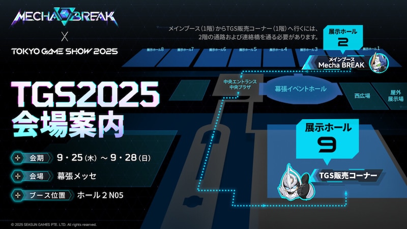 Amazing Seasun Gamesは、2025年9月25日から28日にかけて幕張メッセで開催される「東京ゲームショウ2025」への出展も発表した。『Mecha BREAK』ブース(ホール2 – N05)では、シーズン1のコンテンツが体験できるほか、来場者限定のコンテンツも用意される。日本のトップコスプレイヤーによるステージパフォーマンスや、人気KOLによるeスポーツ形式のライブマッチが予定されている。