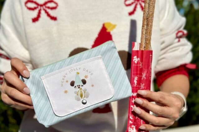 チュロスやスモークターキーレッグに、クリスマス仕様のおてふきキャリーが付属。ぬいぐるみのような存在感で、パーク内でも持ち歩きたくなる可愛さです。