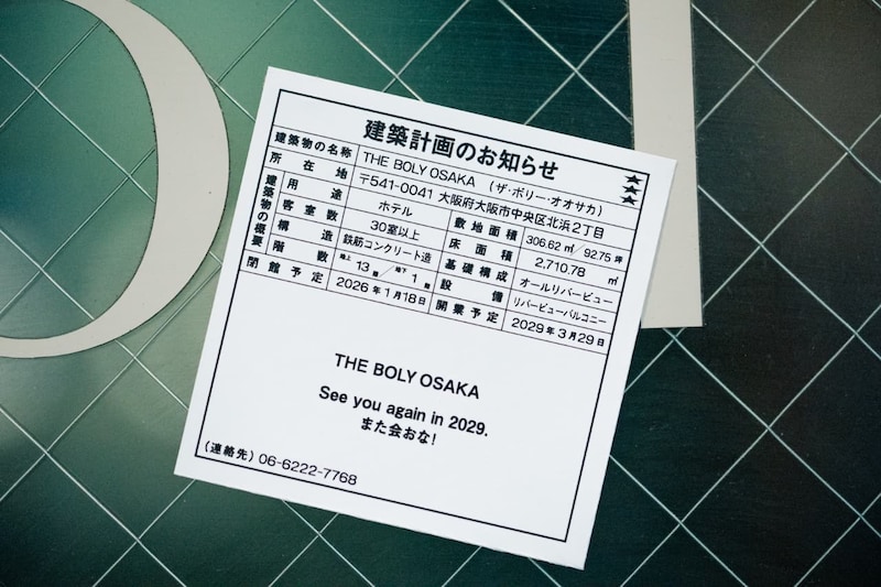 2026年1月18日(日)に閉館する大阪・北浜のブティックホテル「THE BOLY OSAKA(ザ ボリー オオサカ)」。しかし、このたび同地にスケールアップしたホテルを開業する新プロジェクトが始動! しばしのお別れの前に登場する、特別プランやイベントをご紹介します。