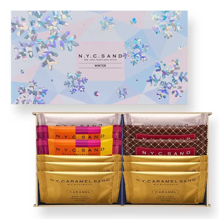 毎年人気の「N.Y.C.SAND」から、この冬だけの特別なギフト「N.Y.C.S.ウィンターアソート」が登場しました。新作の「N.Y.ヘーゼルナッツカカオキャラメルサンド」をはじめ、人気フレーバーが4種入った贅沢な詰め合わせ。雪の結晶をあしらった限定パッケージは、冬の街並みにぴったりな華やかさ♡大切な人へのプレゼントにも、自分へのご褒美にもおすすめです。