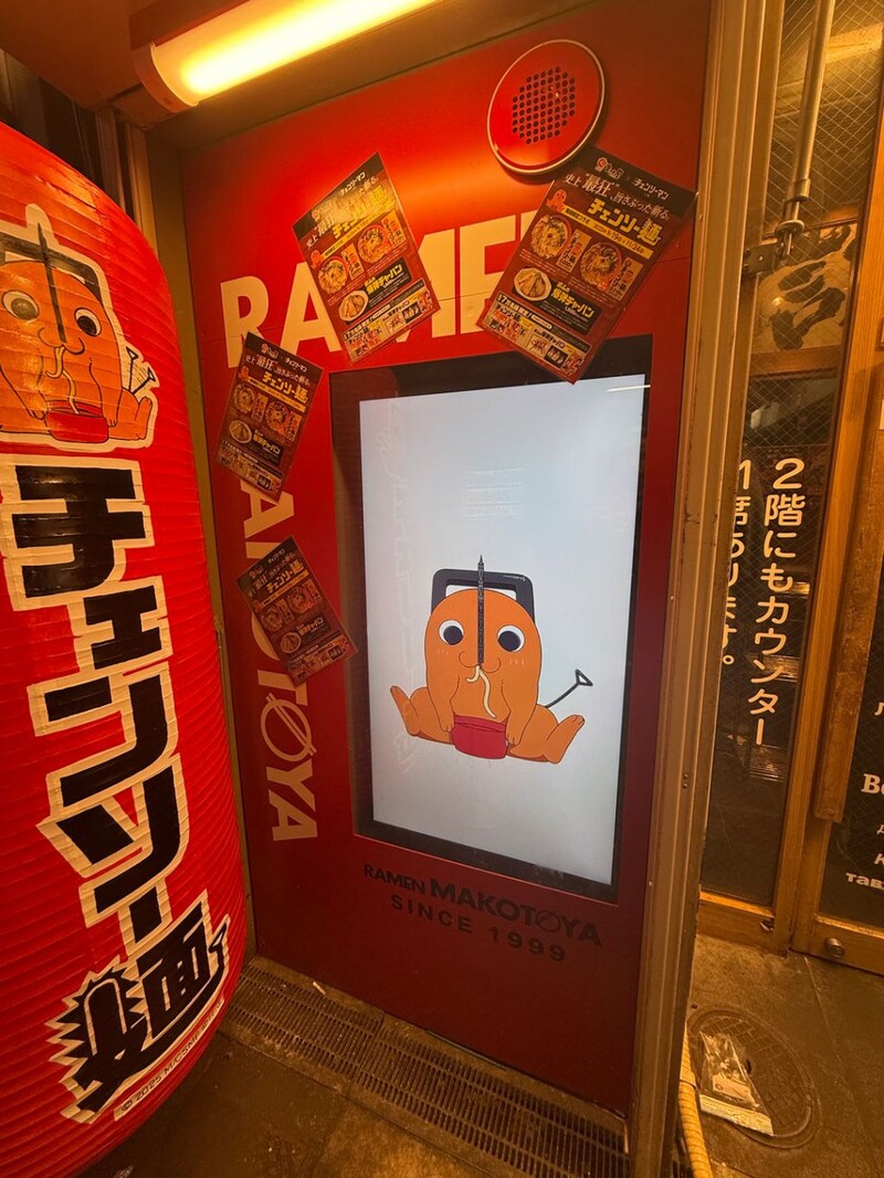 牛白湯スープのラーメンでおなじみ「まこと屋」では、公開日の9月19日から劇場版「チェンソーマン」とのコラボラーメンが販売されている。