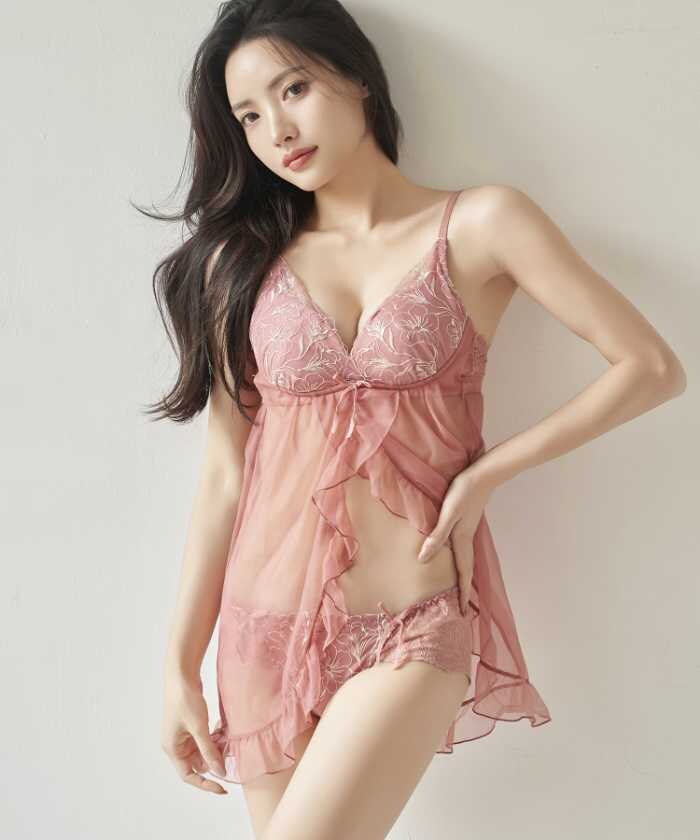 また、カップ付きのシャンテレースベビードール&ショーツは、軽やかなチュールが素肌を透かし、特別感あふれる一枚。