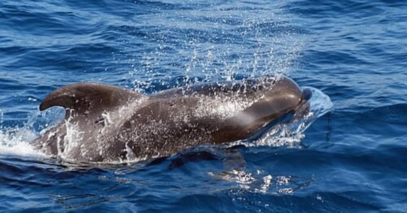 コビレゴンドウは体が黒く、丸い頭を持つ特徴的な海洋哺乳類で、日本ではあまり知られていませんが、世界中の温暖な海に生息しています。