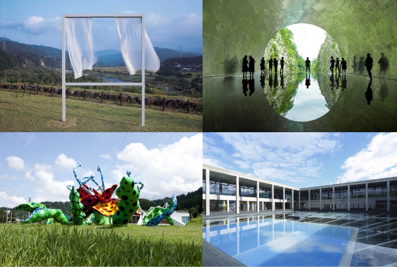 越後妻有の街中や里山風景の中に、アート作品が点在している(写真提供:大地の芸術祭)左上)内海昭子「たくさんの失われた窓のために」Photo T.Kuratani