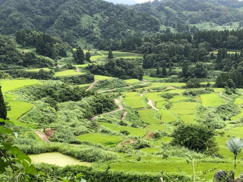 季節によって表情が豊かに変わる星峠の棚田越後妻有地域の風景を作り出す一番のシンボルともいえるのが、山の斜面に広がる棚田だ。しかし現在、若者の都市部への流出を原因とする過疎・高齢化が進んだことで、米作りの担い手が減少し、その存続が危機に瀕しているという。