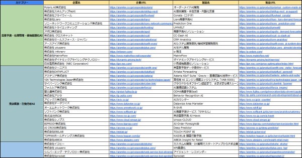 カオスマップを資料請求いただいた方には、各製品の製品名や製品URL情報を記載した「小売り・サービス・EC業界向けAIサービス提供企業リスト(Excel)」も併せて無償でご提供いたします。