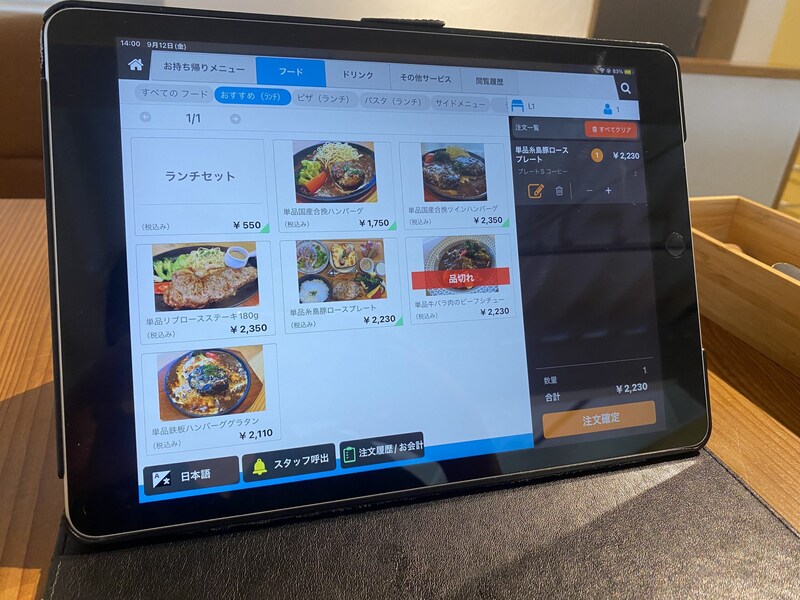 ▲席から注文するスタイルも便利。