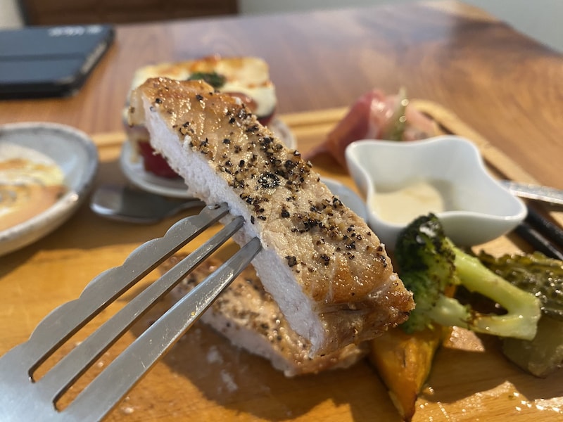 ▲糸島豚ロースプレート。