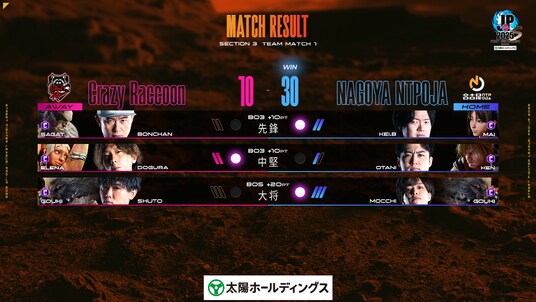 TEAM MATCH 1:【AWAY】Crazy Raccoon vs 名古屋NTPOJA【HOME】