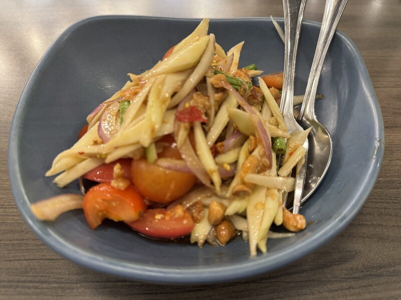 このソムタム、焼きトウモロコシのポテンシャルを最大限に引き出していると感じました。ほかの料理の甘酸っぱい味にもマッチするかも。あまりにも良すぎて、気がつけば、すべてペロリと食べきっていたのでした。