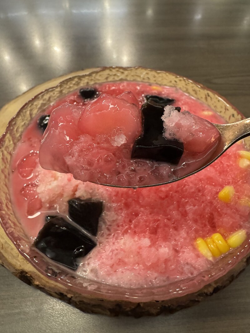 ラスト、かき氷をオーダーすることを強く推奨します。ソムタムの酸味に染まった味覚を完全利リセットできますし、尾を引いている蘇武踏むの酸味が、かき氷の甘さを際立たせてくれます。まさに、ソムタム後だからこそ、より強く感じるかき氷の良さといえます。