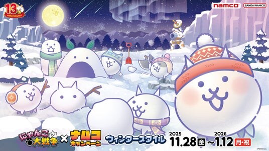 株式会社バンダイナムコエクスペリエンスは、サービス開始13周年を迎えた『にゃんこ大戦争』とのキャンペーン『にゃんこ大戦争×ナムコキャンペーン ウィンタースタイル』を、2025年11月28日(金)から2026年1月12日(月・祝)まで、全国のアミューズメント施設「ナムコ」および「ナムコオンラインクレーン」(以下ナムクレ)で開催します。