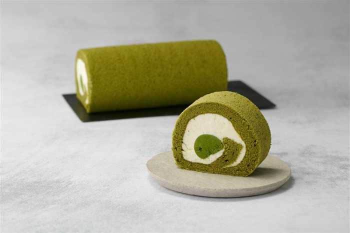 抹茶ロールケーキの生地は軽やかな口当たりになるよう丁寧に焼き上げ、クリームには抹茶をふんだんに使用。
