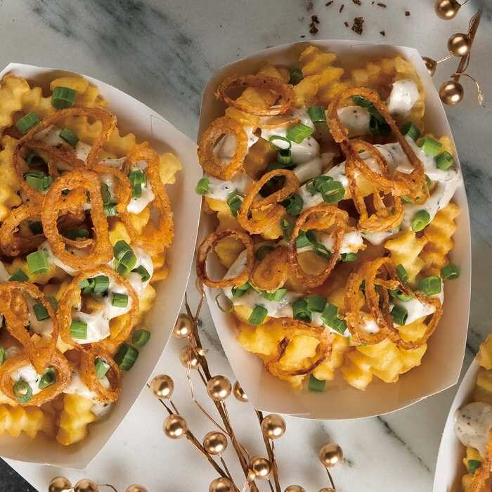外はカリッ、中はほくほくのクリンクルカットフライに、黒トリュフ入りマヨネーズソースを贅沢に合わせた「ブラックトリュフフライ」。