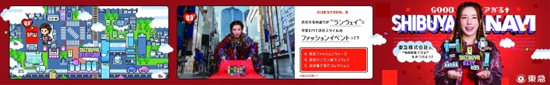 映像はテンポよく進み、仲さんが「GOOD アガる瞬間」を探すように、マップ上を移動していきます。渋谷で行われているイベントや、歩行者が移動しやすくなるように整えられた導線の工夫など、街のあちこちに散りばめられた取り組みがクイズ形式で登場するのも特徴です。視聴している側も思わず「どんな答えになるんだろう」と参加している気分になれる構成になっています。