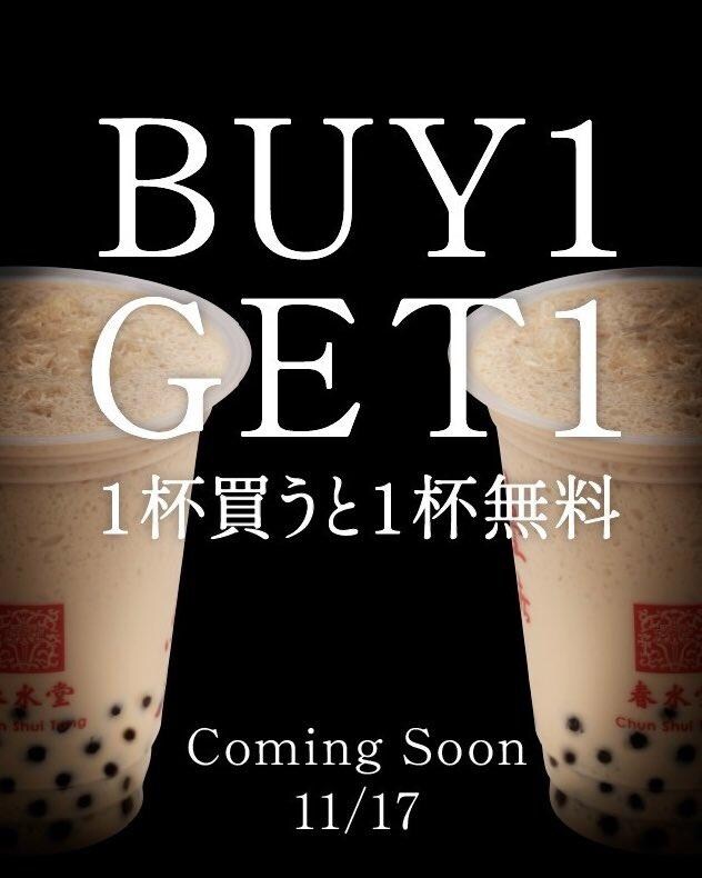台湾カフェの「春水堂(チュンスイタン)」は、2025年11月17日から12月19日までの期間、LINE公式アカウントでドリンクを1杯買うともう1杯もらえるお得なクーポンを配信しています。