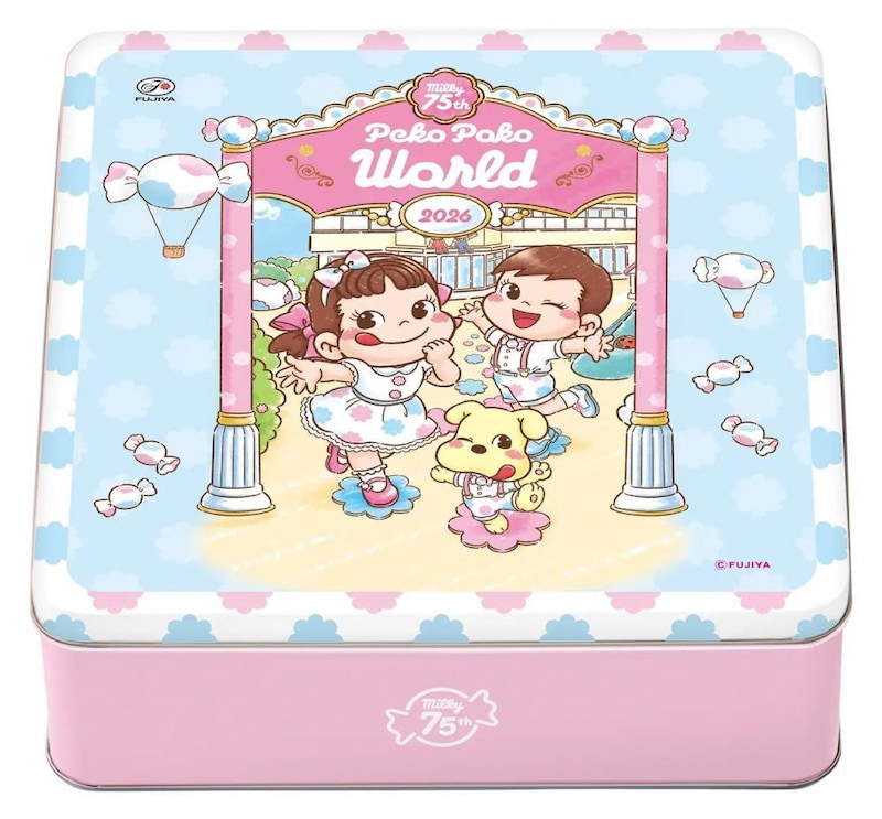 26年に75周年を迎える『ミルキー』のほか、不二家のお菓子をたっぷり詰め合わせた"おたのしみ缶"が登場します。