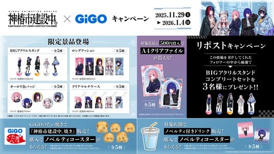 株式会社GENDA GiGO Entertainment(本社:東京都港区 代表取締役社長:二宮 一浩、以下「当社」)は、GiGOグループのお店におきまして、2025年7月より放送開始のTVアニメ『神椿市建設中。』とコラボした「TVアニメ『神椿市建設中。』×GiGOキャンペーン」を2025年11月29日(土)より開催いたします。