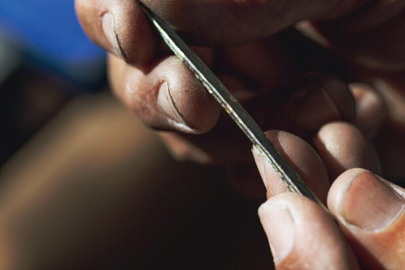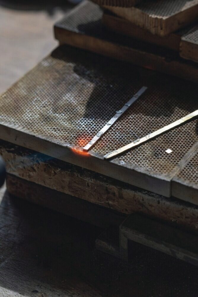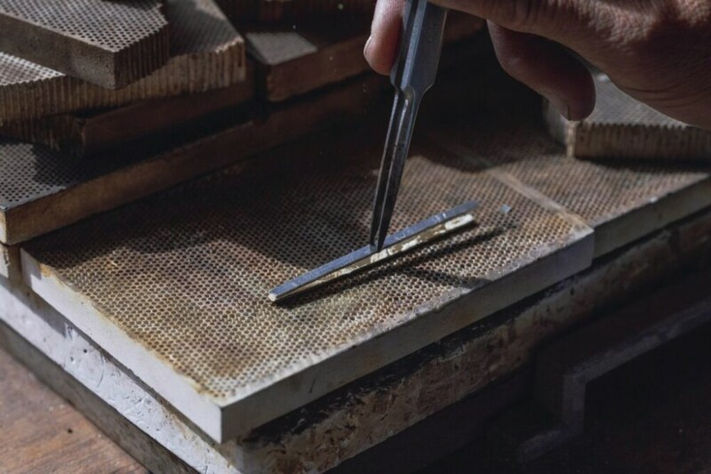 1997年の創業以来、軸となるスタイルは変えずに、様々な技術を探求し、進化を続けてきた「市松」。その技術のひとつが「合わせ金」だ。
