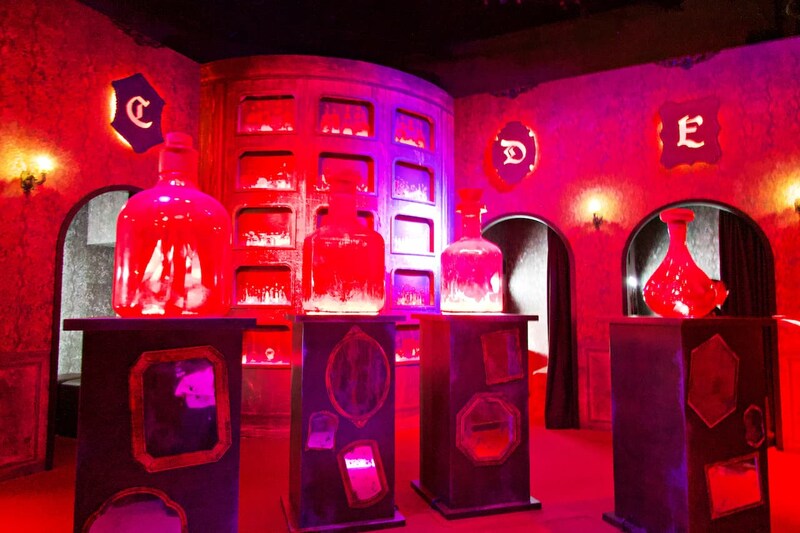 魔女たちが画面に現れ、鏡に向かって喜怒哀楽の表情を全力で披露すると、その表情の出来によってそれぞれの試験管に液体が溜まっていく仕掛け。思わず表情をオーバーにしてしまい、一緒に体験した人たちと笑い合える瞬間も。
