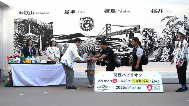 関西パビリオンでは、「ご来館148万人達成記念セレモニー」を実施。「いのち輝く関西 悠久の歴史と現在」をテーマに、滋賀・京都・兵庫・奈良・和歌山・鳥取・徳島・福井・三重の9府県が出展。関西全体の魅力を発信してきました。