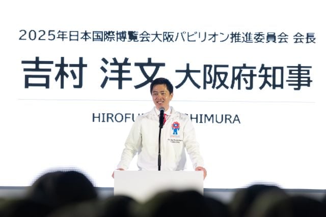閉館30分前にクロージング感謝セレモニーが行われ、来館者を迎えてきたアテンダントや運営スタッフ500名以上が参加。吉村知事ら関係者からは、半年間パビリオンを支え続けたスタッフへ温かな労いの言葉が贈られました。
