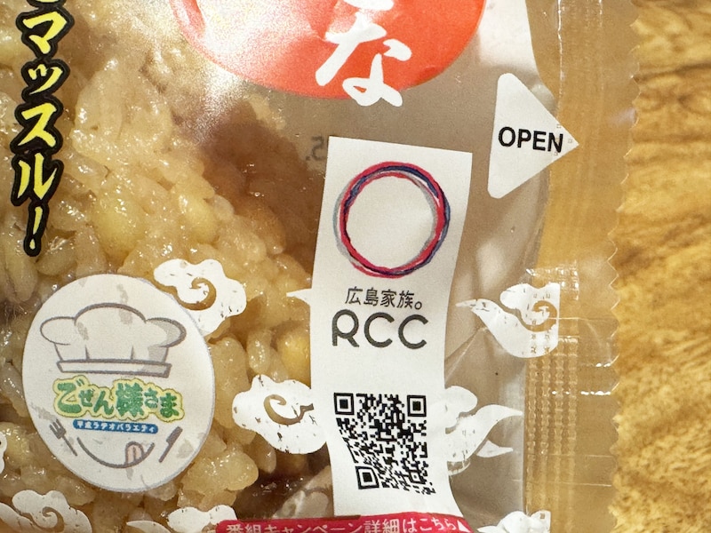 「RCCラジオ「平成ラヂオバラエティ ごぜん様さま」監修商品です。かき醤油の炊き込みご飯に甘辛いタレにまぶした鶏唐揚げが入ったもち麦入りの大きなおむすびです。※中国地方のみの取り扱いです。※山口県の一部では取り扱いがございません」