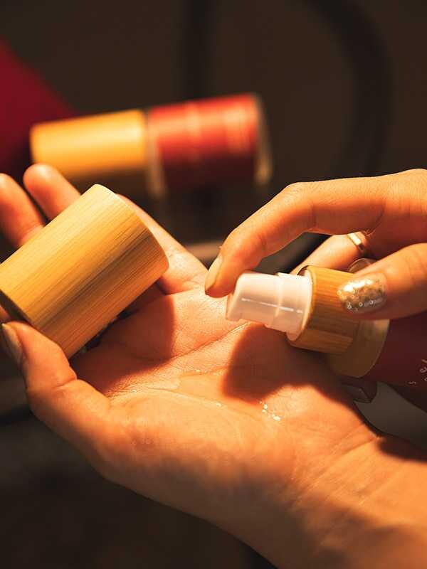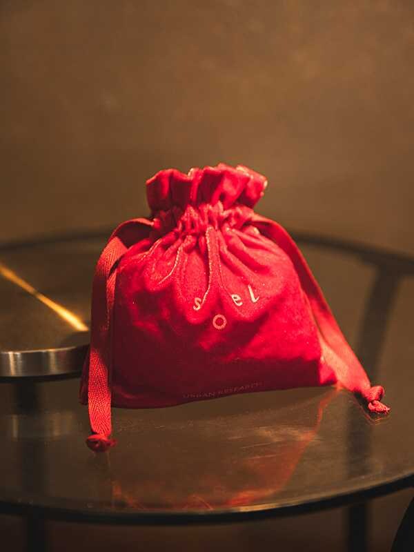 今回のコラボレーションでは、ホリデームードを感じさせる深いレッドの“特別な巾着”が付属。オイルとの相性も良く、上品で贈り物にもぴったりな仕上がりです。