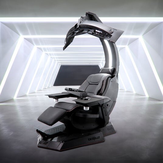 サソリ型の構造をモチーフにした未来的なデザインが最大の特徴で、視覚的インパクトはもちろんのこと、機能面にも優れています。全身を包み込むようなエルゴノミクス設計により、長時間の着座でも疲労感を軽減。視界を遮断しながら集中できる構造は、まるで操縦席にいるかのような没入体験を提供します。