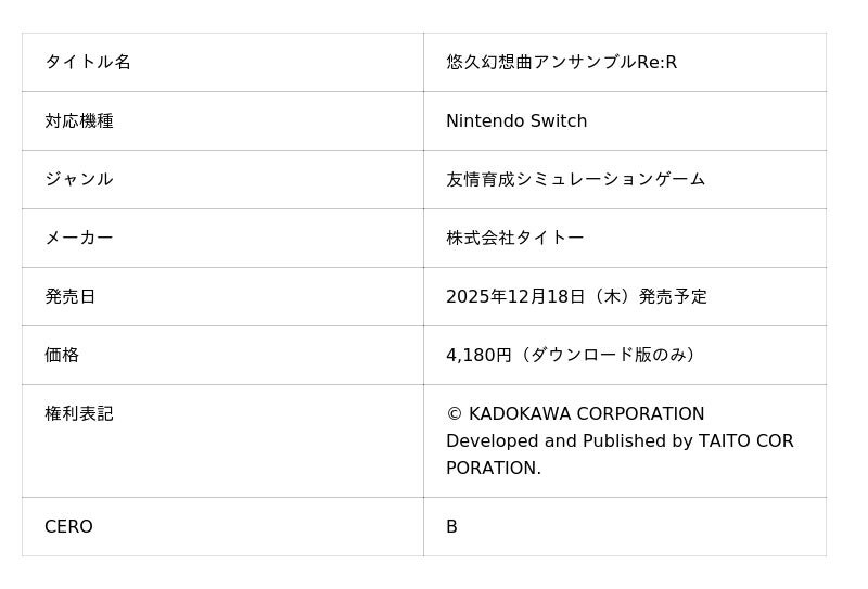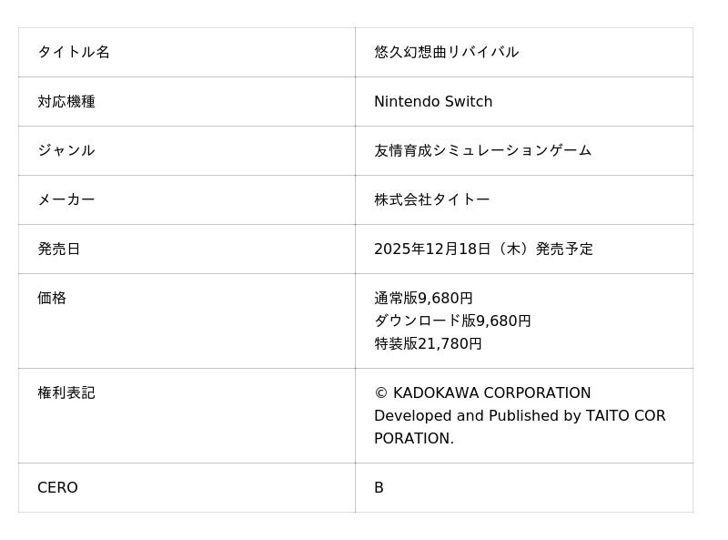 株式会社タイトー(本社:東京都新宿区、以下タイトー)は、あと30日で発売日を迎える、12月18日(木)発売予定のNintendo Switch(TM)用ソフト『悠久幻想曲リバイバル』について、本日より豪華声優陣の直筆サイン色紙が当たるキャンペーンを開催いたします。