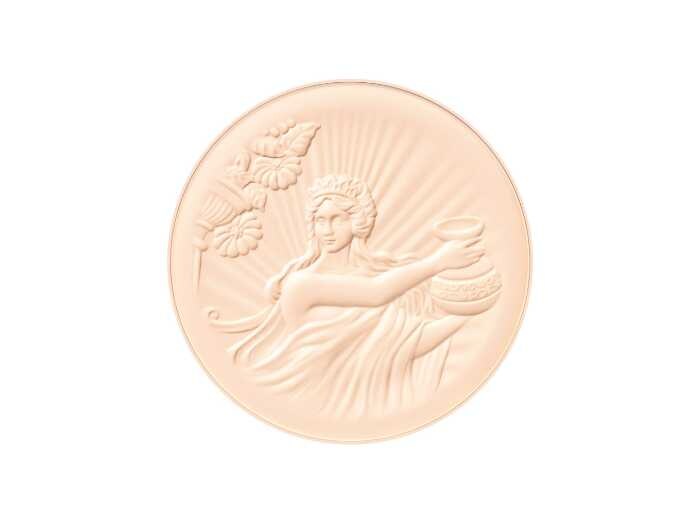 ピンク×ゴールドの華やかな容器に、繊細な女神のレリーフが施された宝石箱のような美しさです。